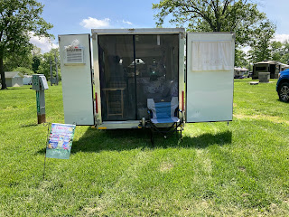 I commented on Facebook that the picnic tables are so far from where I could use them. "Ask another camper to help you," was the suggestion. Yes, I could do that. But I set up a folding table inside the screen tent instead.