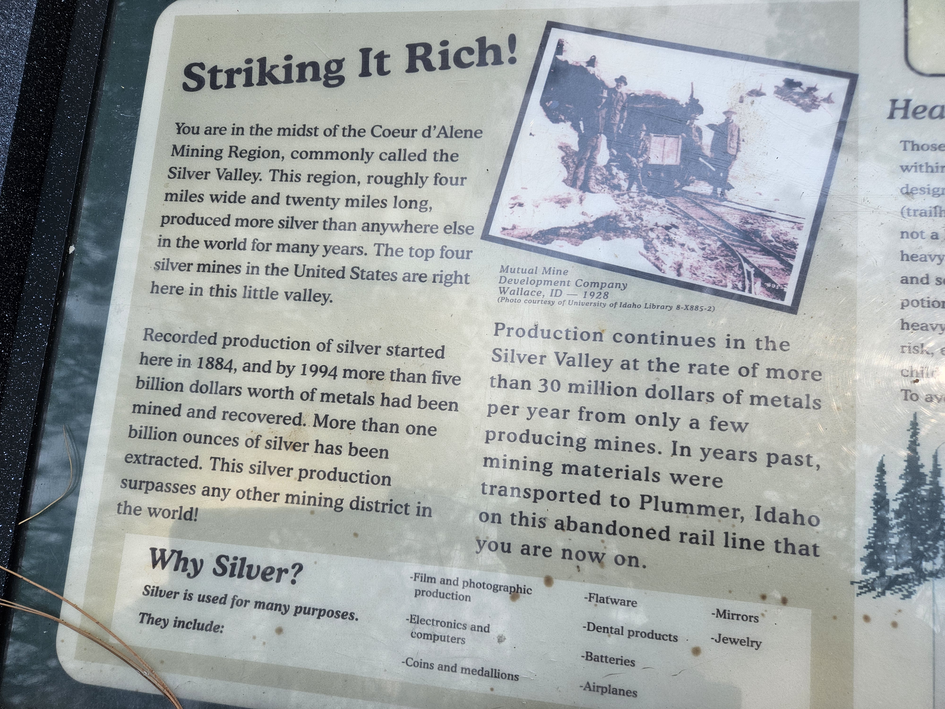I kiosk in Mullan was sponsored by the big mine in town, the Lucky Friday owned by Hecla.  They mine Silver, Zinc and Lead.